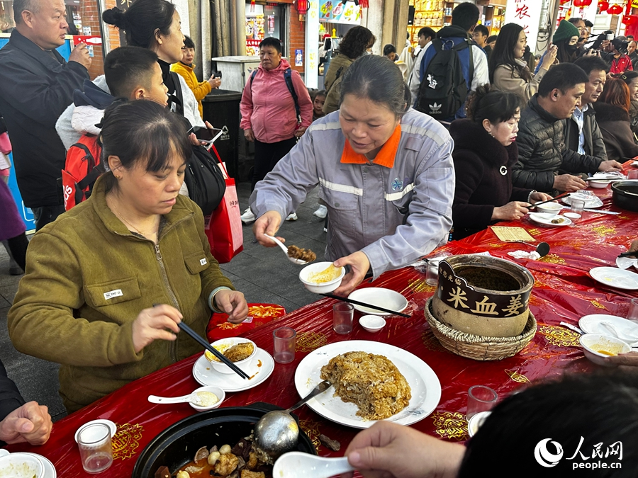 夜晚時分,燈光漸起,暖意融融的流水席准時開席。長桌上,米血姜母鴨、同安封肉、花生湯等地道閩南風味依次上桌,為堅守崗位的城市守護者們送上暖心家宴,讓大家吃得暖心、吃得舒心……“在街道工作20年,第一次在中山路吃這樣的流水席。”環衛工人李大姐和同事們每日維護著這條熱門旅游街區的潔淨,此刻成了座上賓,她端著一碗熱氣騰騰的油飯,笑容燦爛,“夏天有涼茶,冬天有年夜飯,感覺特別溫暖。”