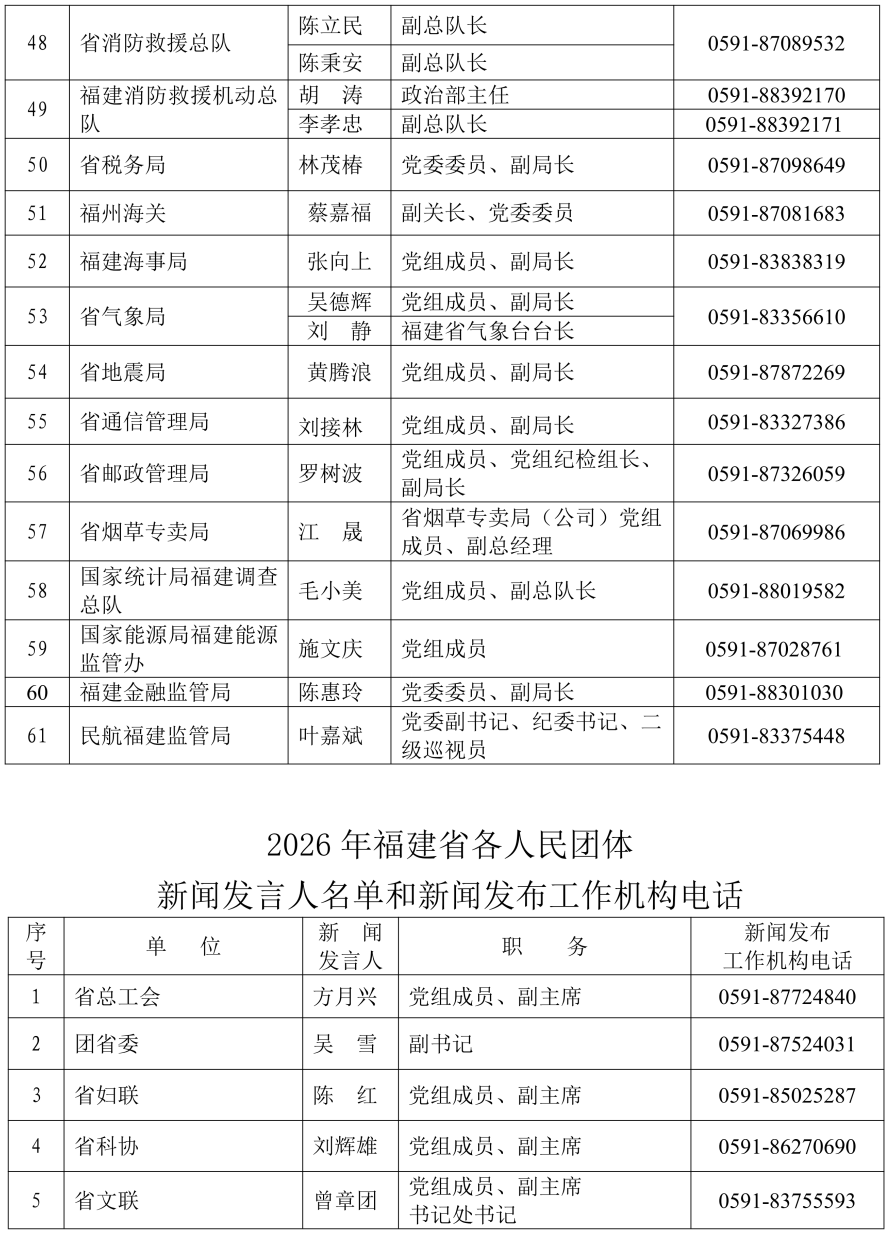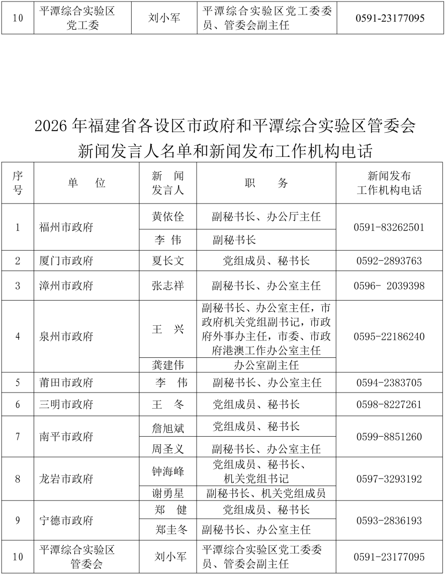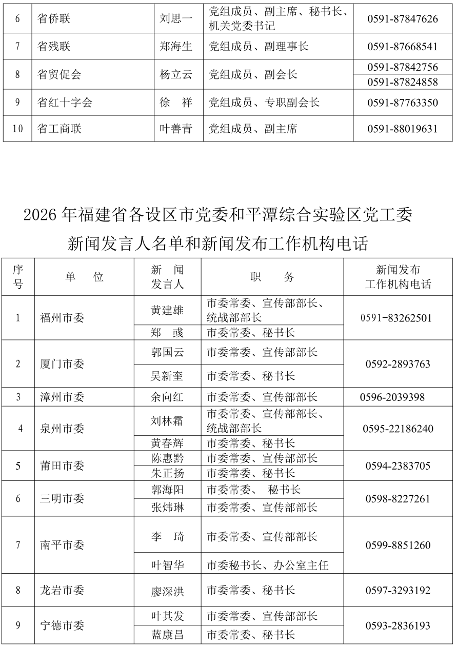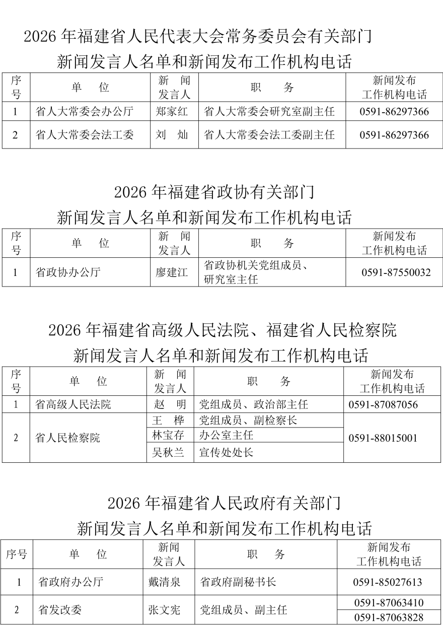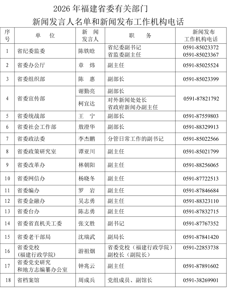 2026年福建省新聞發言人名錄公布