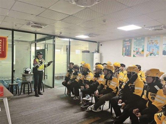 廈門交警通過上門送課等多樣形式,向騎手們宣傳交通安全知識。