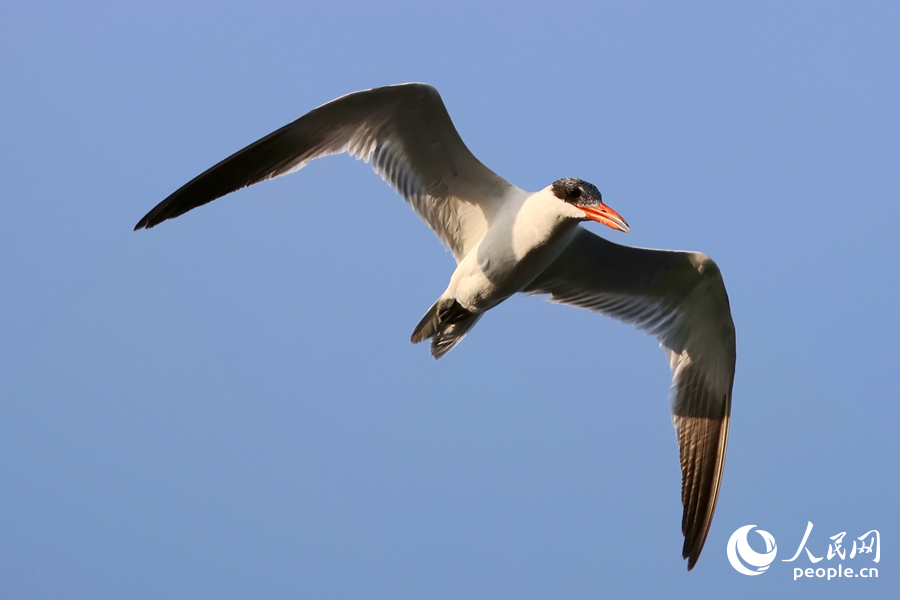 在空中飛行的紅嘴巨燕鷗。人民網記者 陳博攝