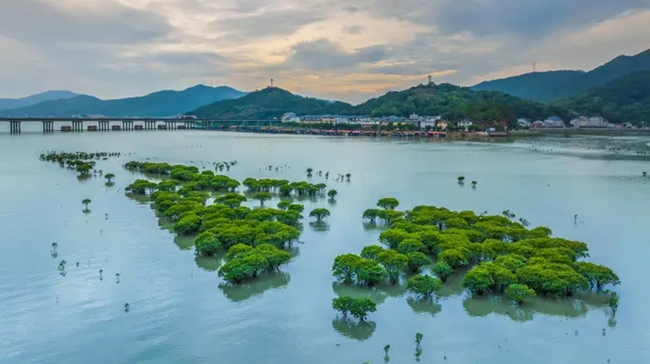在福安,蒼翠盎然的紅樹林點綴著海岸線。李郁攝