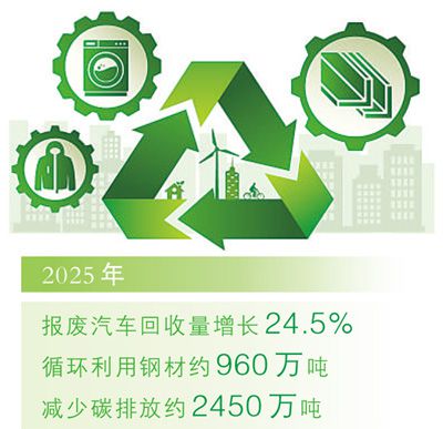廢舊家電,通過回收、拆解,可變廢為寶、投入使用﹔廢舊服裝,經過再生加工,成為可用於紡織的新材料﹔廢鋼鐵,經歷篩分、打包等環節后實現再利用,助力節約礦產資源……據統計,2025年我國再生資源回收總量約3.8億噸。再生資源的有效回收利用,為實現綠色低碳發展、促進社會經濟可持續增長注入動力。
