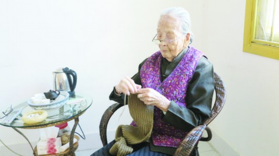 104岁的林芙蓉:用钩针钩出幸福的晚年 林芙蓉在钩毛线