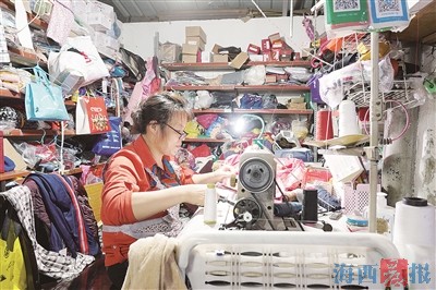 二十年如一日坚守 她的店没有招牌却是“老字号” 王燕青的店约10平方米,塞满了布料和“老古董”。记者 王世伟摄