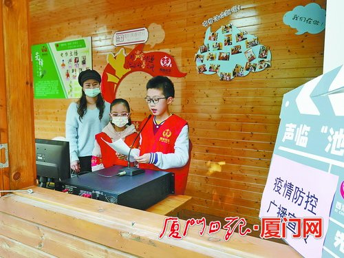 “铁骑娘子军”进街巷 厦门同安区开展多种形式宣传疫情防控 小小志愿者播报疫情防控倡议。
