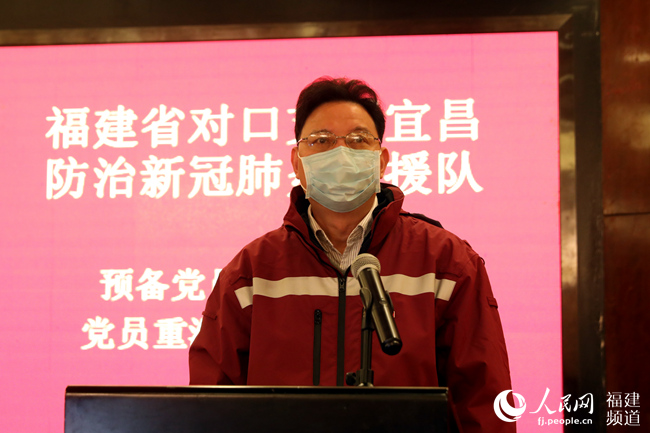 3月1日,福建对口支援宜昌治疗新冠肺炎支援队到达宜昌的第20天,福建支援队驻地里行了一场特殊的入党仪式。