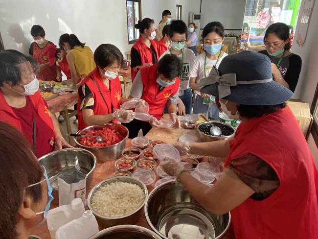 爱心驿站爱心人士制作四果汤。长乐社区供图