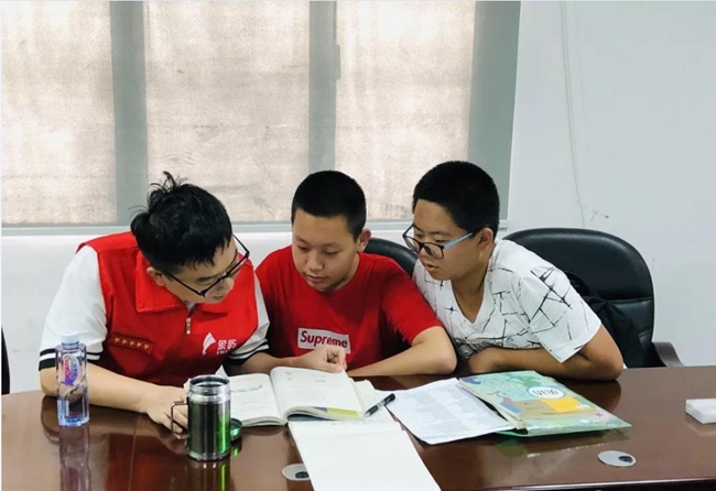 象屿党员志愿者服务队暑期为长乐社区儿童青少年开展课业辅导。长乐社区供图