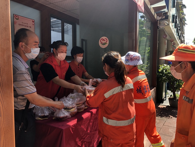 “工作累了,停下来可以歇一歇,坐下来,还能喝杯茶,凉一凉!”长年在长乐路工作的环卫工人高兴地说道。以商铺空间和驿站为主,长乐社区推出爱心驿站,无偿为有需要的居民、户外工作者提供免费茶水、免费充电、临时休息及定期的义诊义剪等爱心服务。商家茗露园与爱心驿站合二为一,坚持每日在店铺门口设置免费爱心茶水摊位,供过往行人和环卫工人免费饮用,在炎热的夏日里成为一道靓丽的风景线。