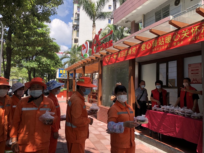 长乐社区爱心驿站为户外工作者送清凉。长乐社区供图