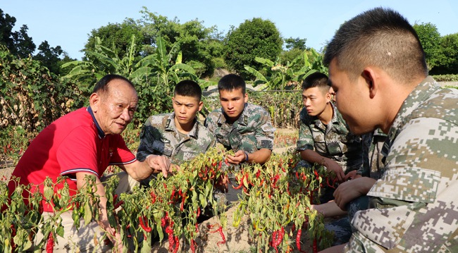 八旬老人叶福伟在连队菜地现场指导战士种植蔬菜。林林摄