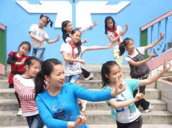 肖向丽教孩子们表演南平南词。 赵云燕 摄
