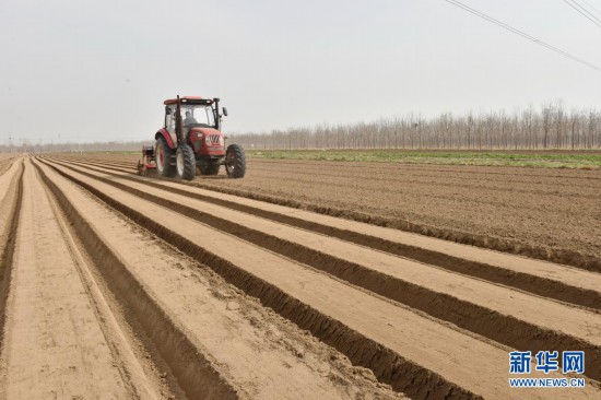 3月25日,河北省邢台市南和区三思镇南韩村农民利用机械在田地播种柴胡。