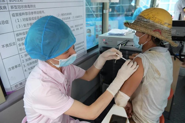 近日,福建省厦门市湖里区组织“疫苗接种车”开进该区产业人才子弟学校(高林校区)施工工地,为一线工人们就地开展新冠病毒疫苗接种。