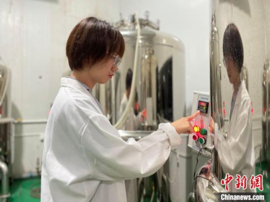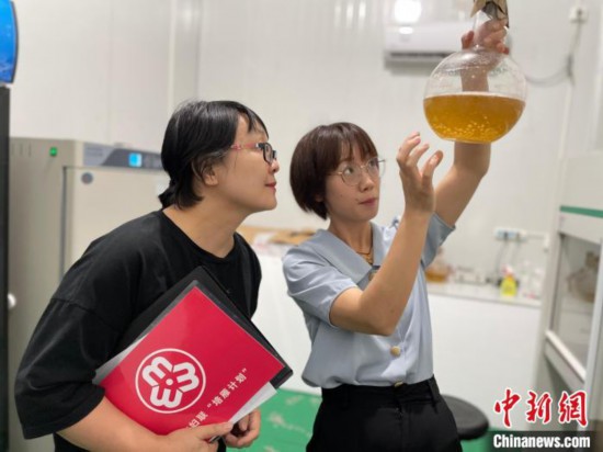 于艳观察液体菌种。 林春茵 摄