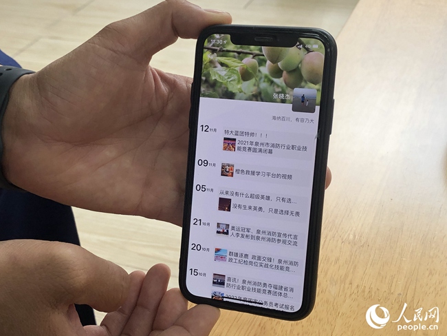 张晓杰的微信朋友圈动态,绝大部分与工作有关。人民网 陈欢欢摄