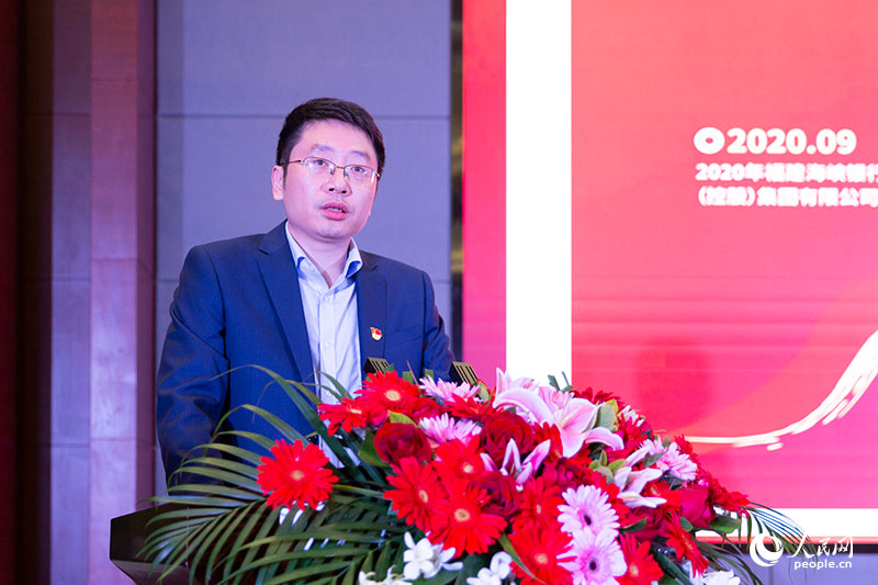 福建海峡银行党委书记、董事长俞敏致辞。人民网 焦艳摄