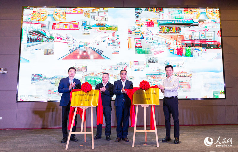 参会嘉宾上台为“海峡西部农特品鉴馆”网上展馆及“临洮县百合生产基地”网上展馆揭牌。人民网 焦艳摄