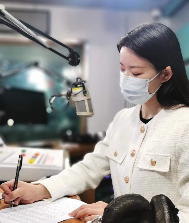 主播小琦正在演播室中连线听众。泉州广播电视台供图