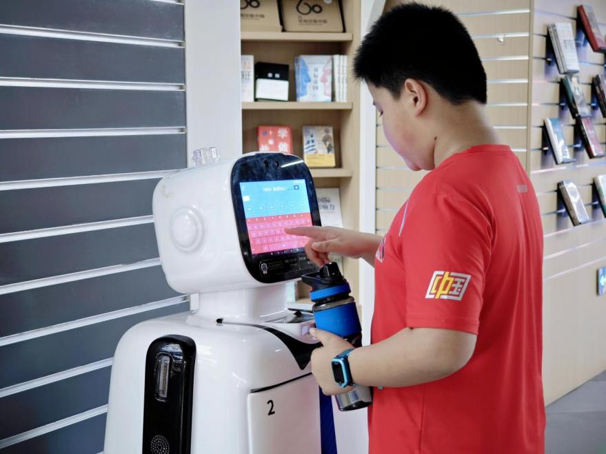 “这么酷!真是太好玩了!”这是10岁的小宇和妈妈第一次来到福州安泰新华图书城。听说这里有可以带路找书的“笨小宝”机器人,小宇惊喜地“哇”了一声,立刻跑到“笨小宝”身边操作了起来。