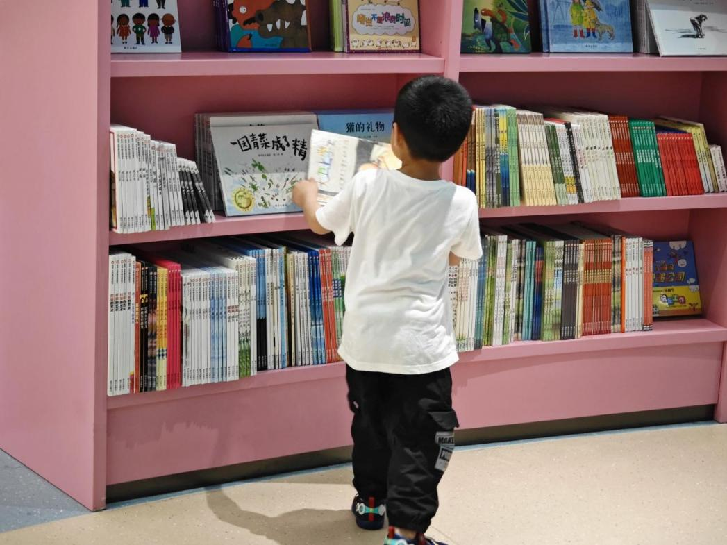 “我们一起玩搬运游戏吧,谁先把自己的湿衣服洗好晾干,谁就是明天的小当家!”家住安泰图书城附近的刘女士经常带着3岁的儿子浩浩逛书店,浩浩熟练地从“儿童习惯养成区”的书架上抽出一本绘本,坐在儿童阅览区中和妈妈一起翻阅,椅子不大不小,正好符合小龄段儿童的身形。“我之前在这家书店拍照发朋友圈,收获了好多赞,朋友们都表示要带自己的孩子过来体验这家儿童友好书店。”对于这里的硬件,刘女士很满意。
