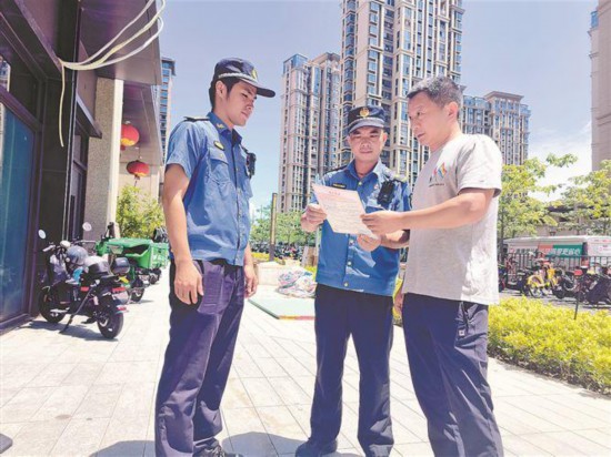 在杜景猛看来,为民管城,如同“绣花”,不仅要以人为先,更要在“细”字上下功夫。不久前,巡查辖区某安置房小区时,杜景猛发现其中一栋楼的11层外墙有一个空调外机未安装在原设计位置,存在安全隐患。尽管到了下班时间,但杜景猛放心不下,马上找到物业人员一起上门沟通整改。当天中午,在业主同意后,杜景猛和同事加班加点帮忙拆除空调并重新安装,之后,他和同事又对小区全面排查了一遍,10余处安装不规范的空调外机均及时完成整改。