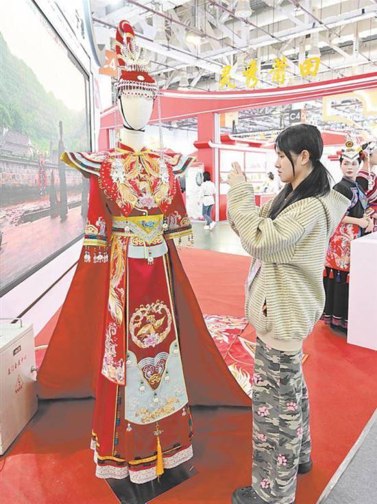 展会上,精美的少数民族服饰抢人眼球。记者 黄晓珍摄