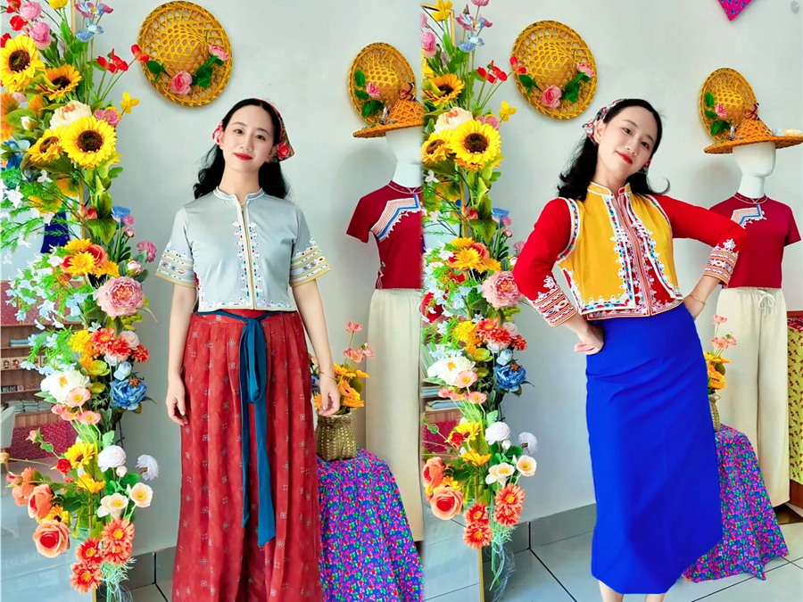 其次是功能上的“链接”。在惠安当地,记者常看到一些“乱中有序”的“混搭美学”,比如保留传统纹饰线条的T恤,将传统短衫与轻盈的八破裙相搭配,让人眼前一亮;再如惠安女对襟袄叠穿汉服襦裙,显出女性完美的身形比例,身姿摇曳……在传统的土壤中“耕耘”,新生力量的创新表达,一定程度上提升了年轻群体的接受度。