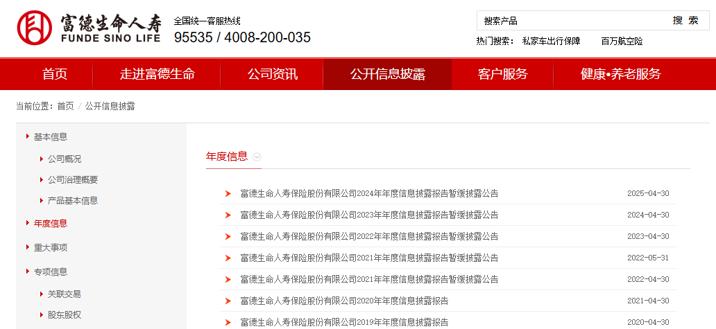 官网显示,从2021年起,富德生命人寿已连续4年发布年度信息披露报告暂缓披露公告。