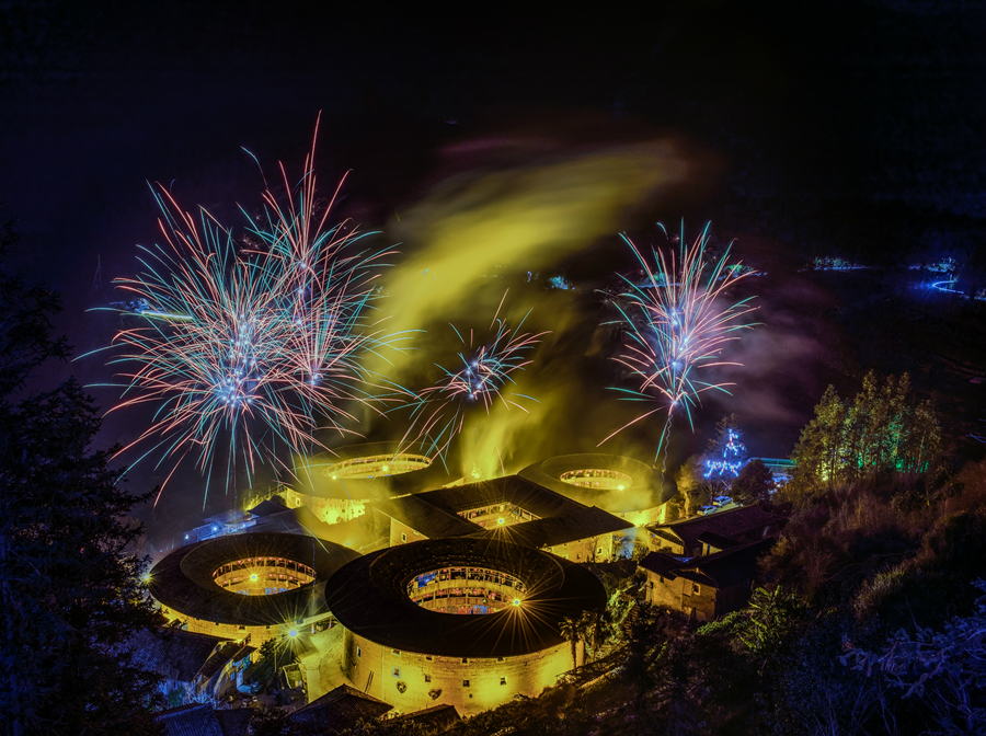人民网龙岩1月18日电 (记者李昌乾)灯笼楼上明、舞龙楼前跃、烟花绽夜空……春节临近,福建土楼的年味渐渐浓郁起来,一座座“活着的遗产”正以它历经百年的温暖怀抱,迎接又一个中国年的到来。