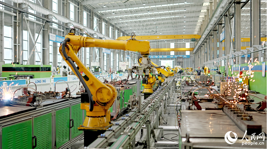 位于龙岩新罗北部新城(厦龙合作区)的龙净智慧产业园,车间内的工业机械臂精准“挥舞”,焊花飞溅中完成焊接等工序。人民网记者 李昌乾摄