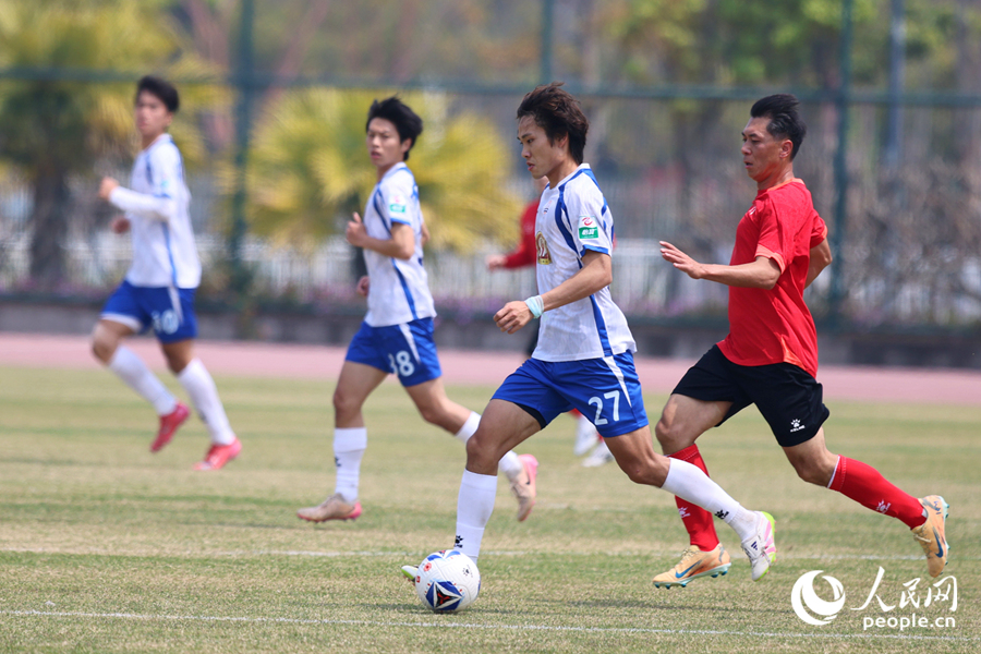 绿茵之上,球员们追逐奔跑,尽显生机与活力。人民网记者 陈博摄