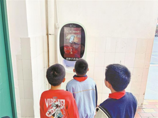 学生们在学校通过电子屏观看厦门建行制作的短视频《压“祟”钱的故事》。