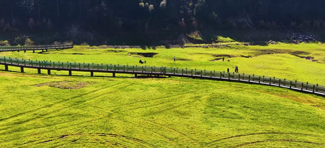 春回大地,水位回落,湖畔草地悄然显露,茵茵绿草如绒毯铺展,成为独属于春日的限定美景。丰水期时,草地隐于碧波,与湖水相融,尽显灵动之美。如今的九岭溪,牛头山水库碧波荡漾,托溪溪水潺潺不息,库滨草甸绿意盎然,卵石步道蜿蜒曲折,琴桥遗址古韵留存,一幅“河畅、水清、岸绿、景美、人和”的水美乡村画卷徐徐铺展。