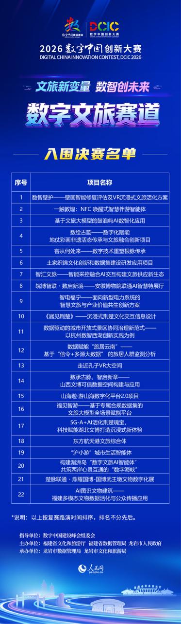 22强跻身决赛!2026数字中国创新大赛数字文旅赛道入围决赛名单出炉