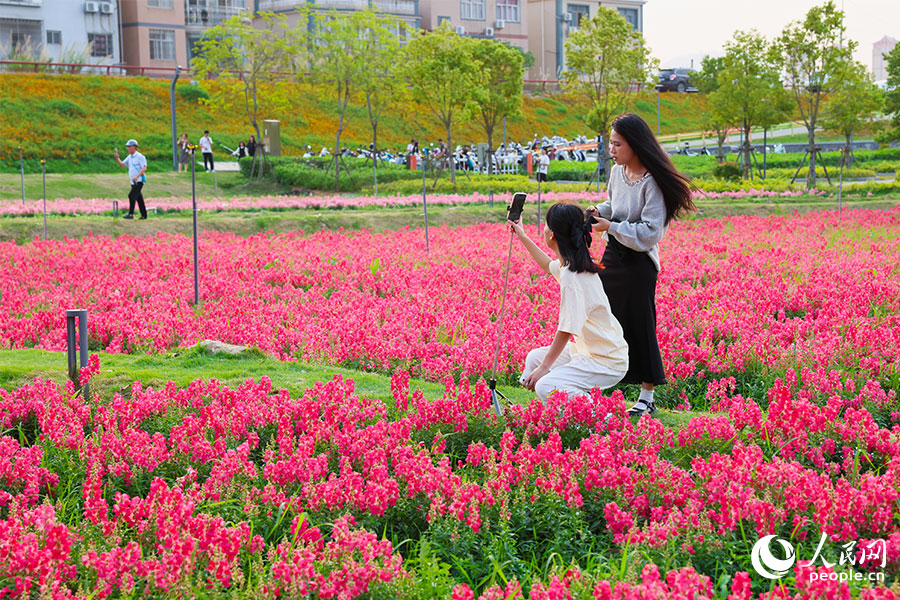 人民网漳州4月13日电 (记者焦艳)连日来,漳州九龙江畔的龙江岁月景区内,数百亩金鱼草迎来盛花期。连片的橙色、粉色花田沿江铺开,层层叠叠、绚烂夺目,不少市民游客慕名而来,在缤纷花海间流连忘返。
