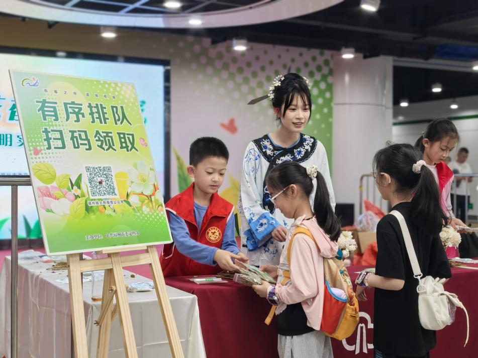 不少小朋友来现场领取茉莉花杆苗。福州市委文明办供图