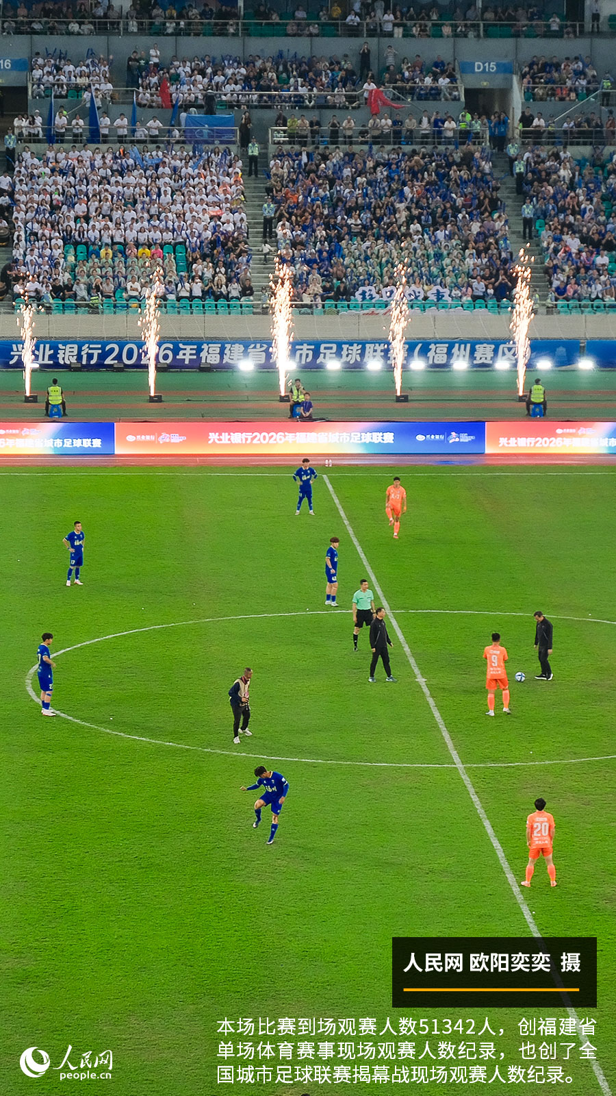4月19日晚,2026年福建省城市足球联赛在福州开幕,赛事揭幕战由福州队对阵厦门队。最终,厦门队3:0战胜福州队。