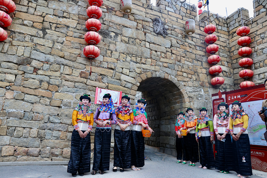惠女漫步古城,展示传统服饰。陈小阳摄