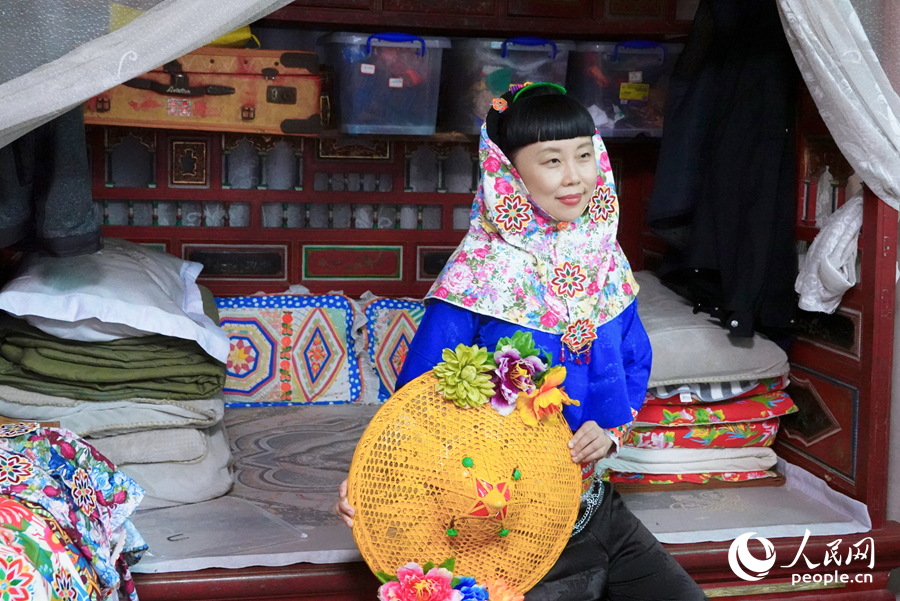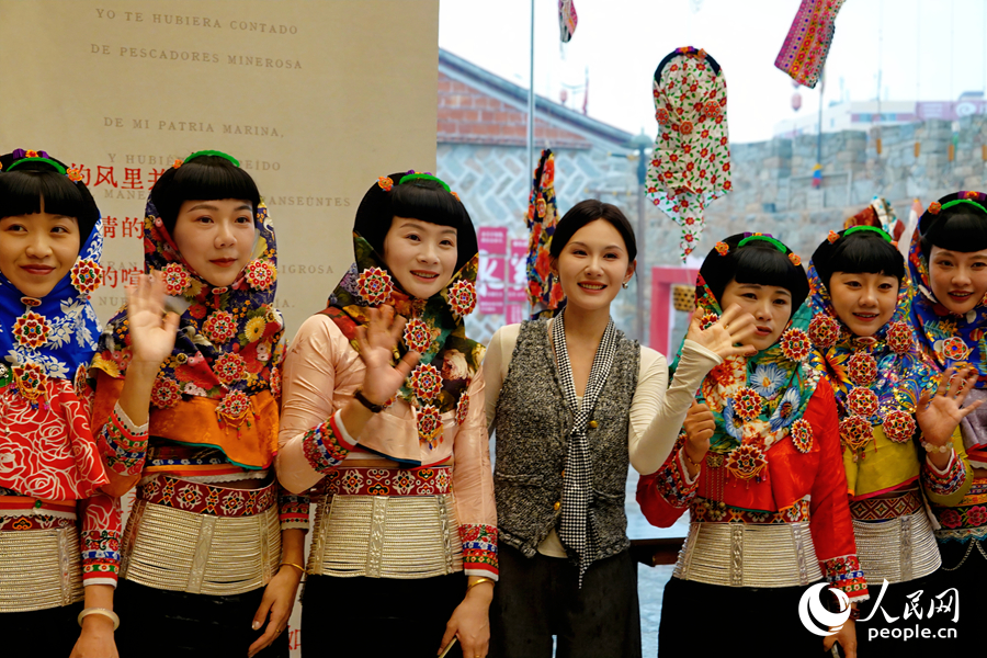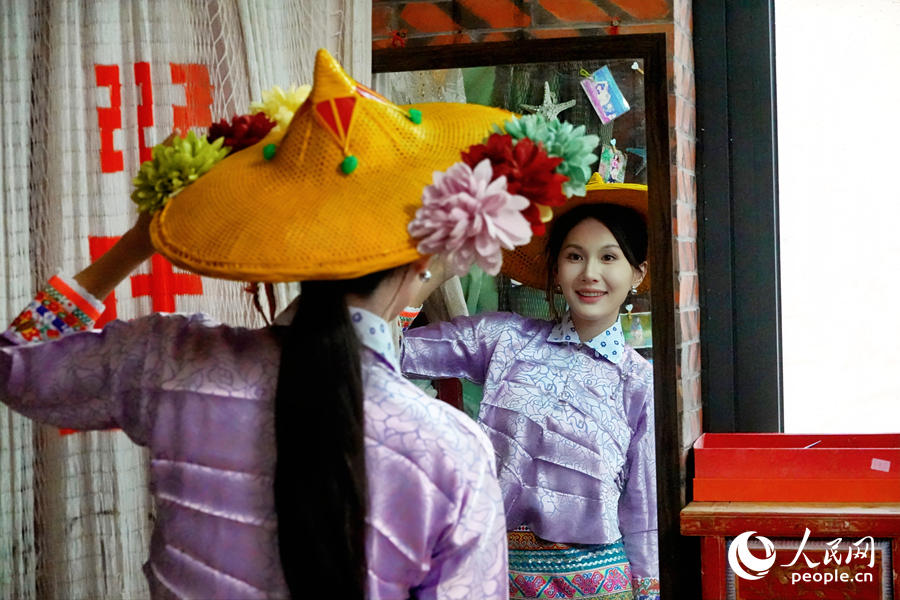 游客体验惠女服饰。人民网 杨灏昱摄