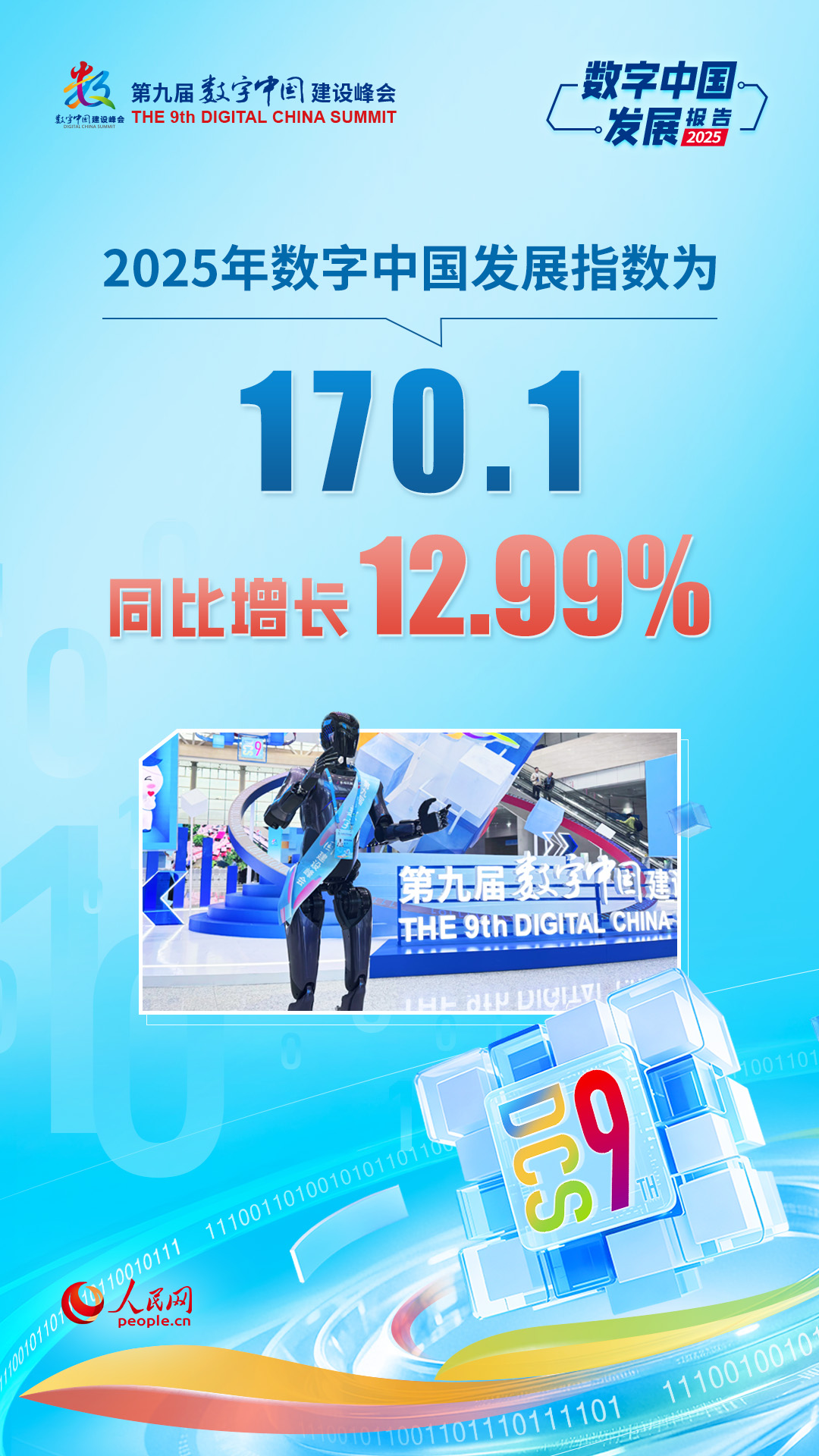 收藏人民网福州4月29日电 (记者李唯一、陈永整)在29日举行的第九届数字中国建设峰会主论坛上,国家数据局发布了《数字中国发展报告(2025年)》(以下简称“报告”)。报告显示,2025年数字中国发展指数为170.1,同比增长12.99%。